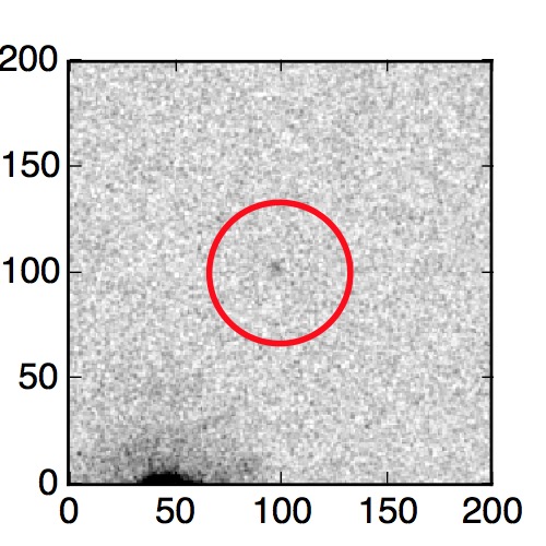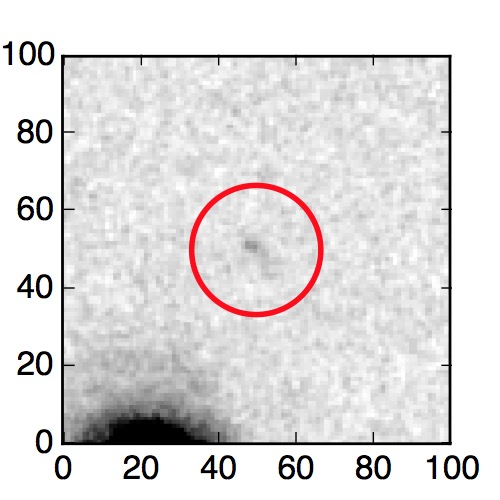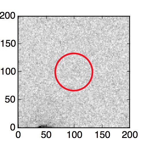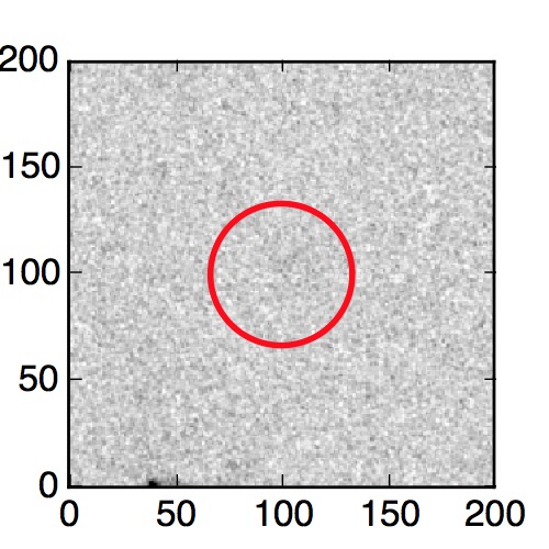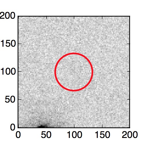 The red circle in the various panels is 1" in radius. The images are 6"x6".