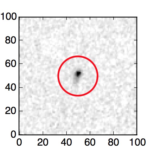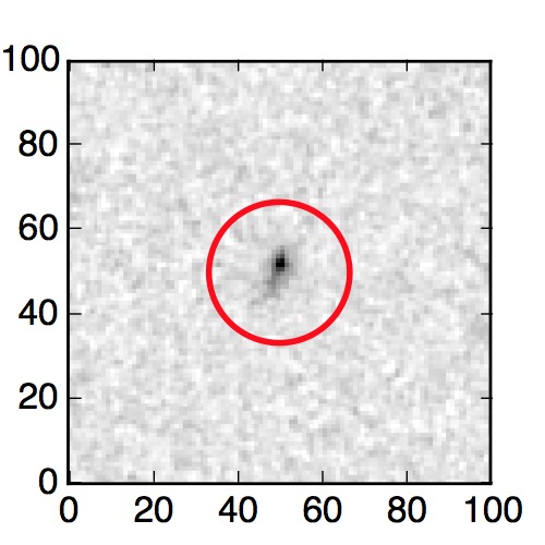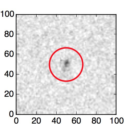The red circle in the various panels is 1" in radius. The images are 6"x6".