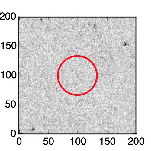 The red circle in the various panels is 1" in radius. The images are 6"x6".