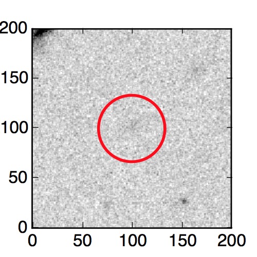 The red circle in the various panels is 1" in radius. The images are 6"x6".