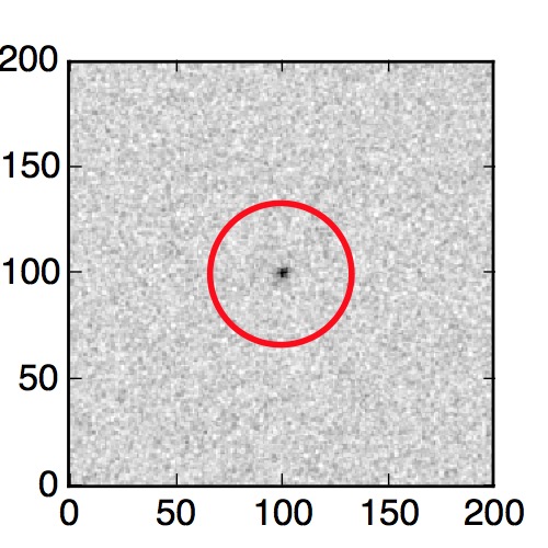 The red circle in the various panels is 1" in radius. The images are 6"x6".