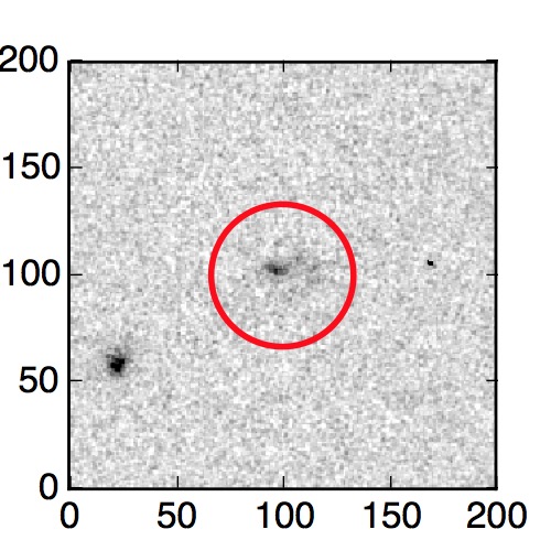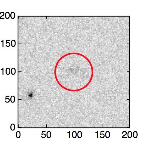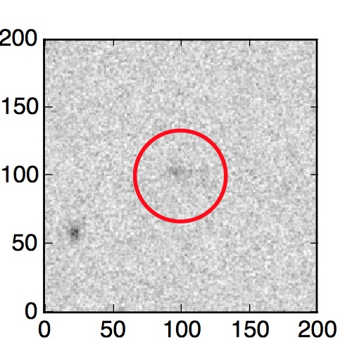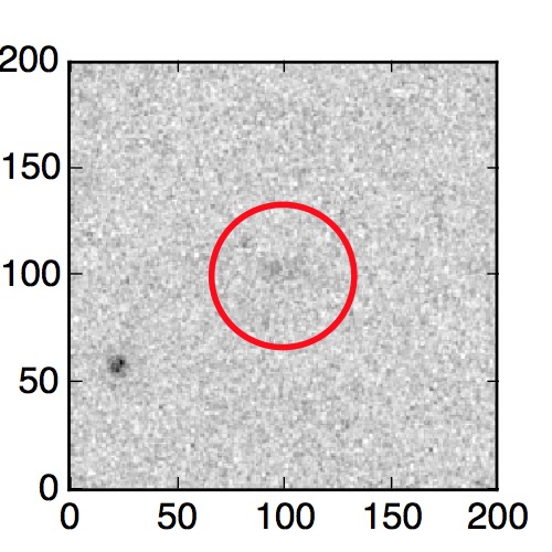 The red circle in the various panels is 1" in radius. The images are 6"x6".