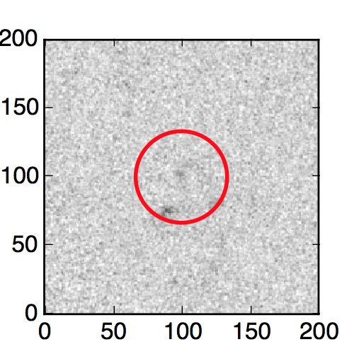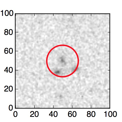 The red circle in the various panels is 1" in radius. The images are 6"x6".