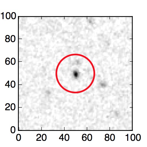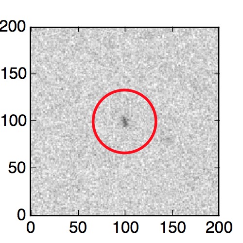 The red circle in the various panels is 1" in radius. The images are 6"x6".