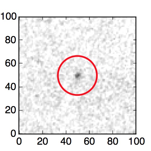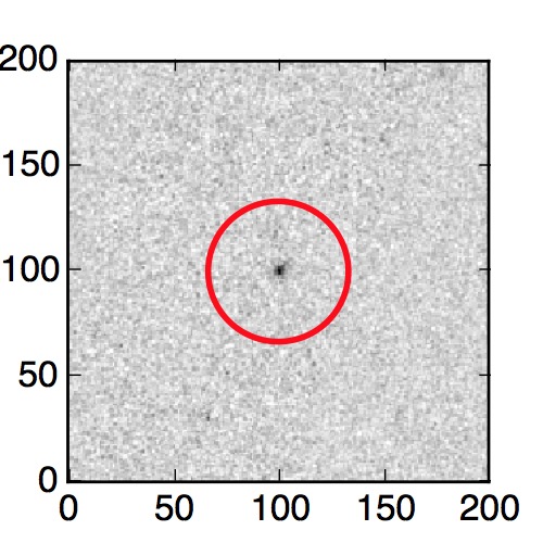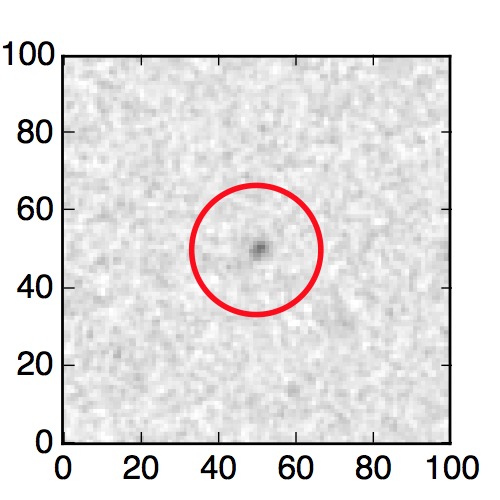 The red circle in the various panels is 1" in radius. The images are 6"x6".