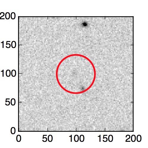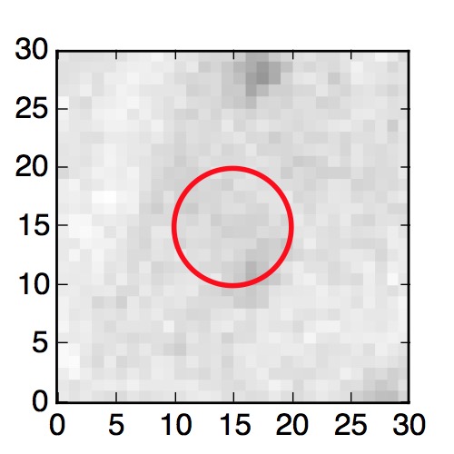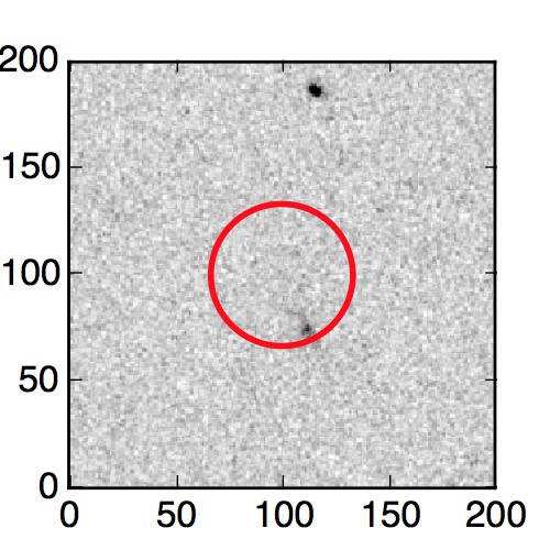 The red circle in the various panels is 1" in radius. The images are 6"x6".