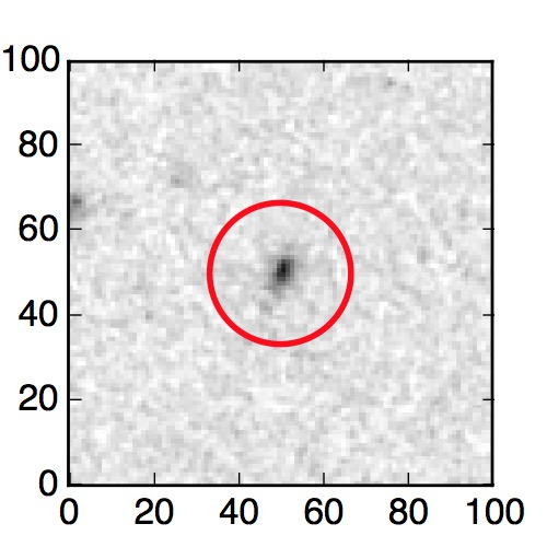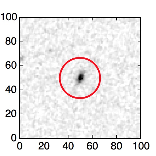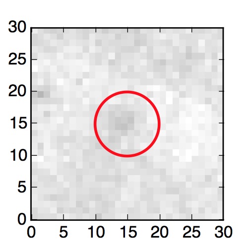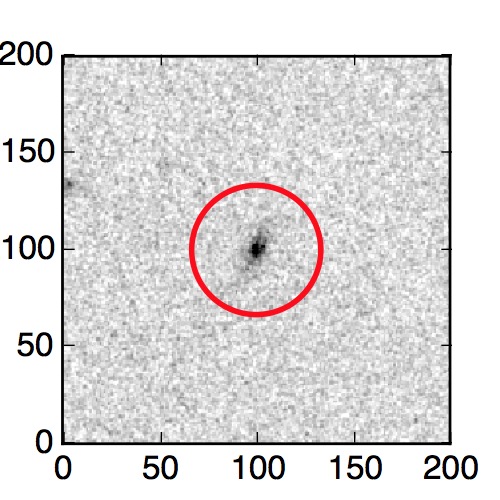 The red circle in the various panels is 1" in radius. The images are 6"x6".