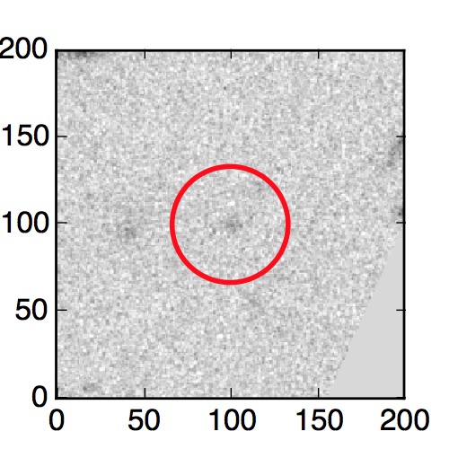 The red circle in the various panels is 1" in radius. The images are 6"x6".