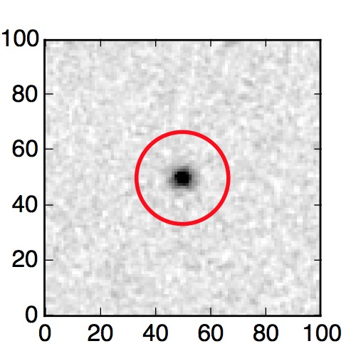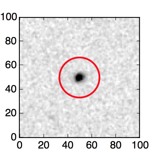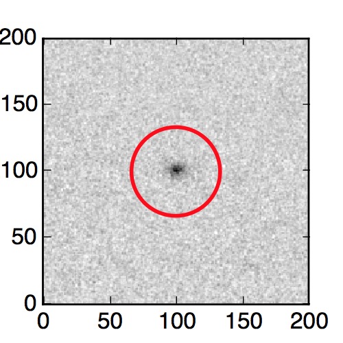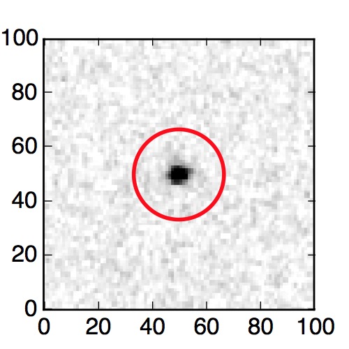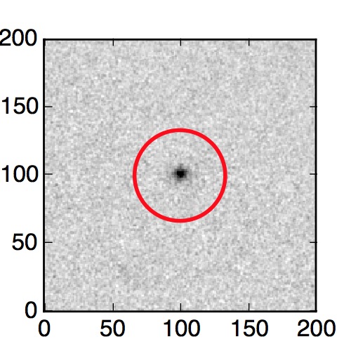 The red circle in the various panels is 1" in radius. The images are 6"x6".