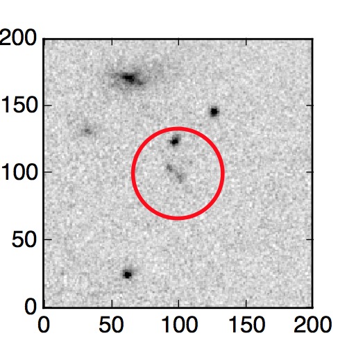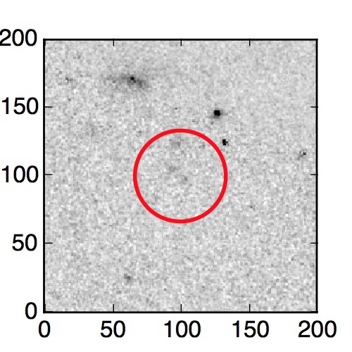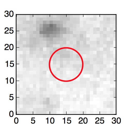 The red circle in the various panels is 1" in radius. The images are 6"x6".