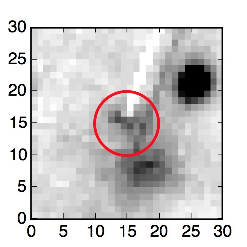 The red circle in the various panels is 1" in radius. The images are 6"x6".