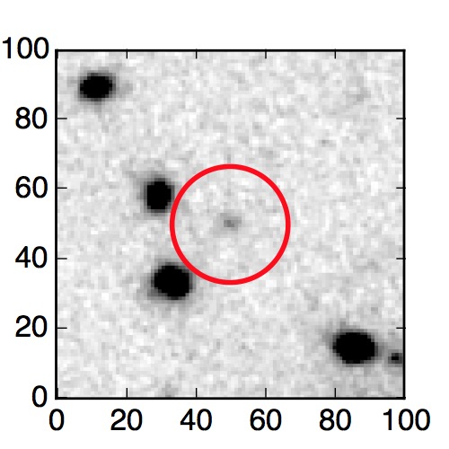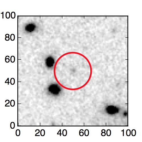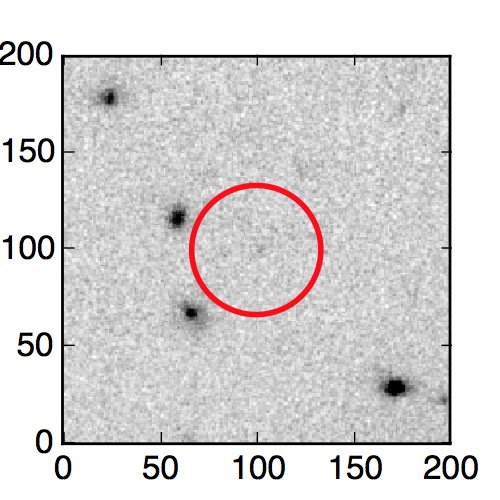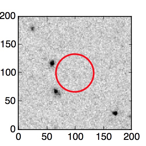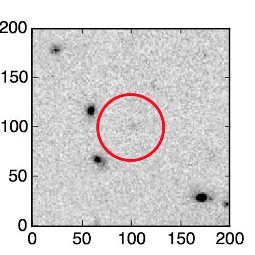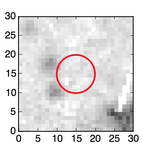 The red circle in the various panels is 1" in radius. The images are 6"x6".