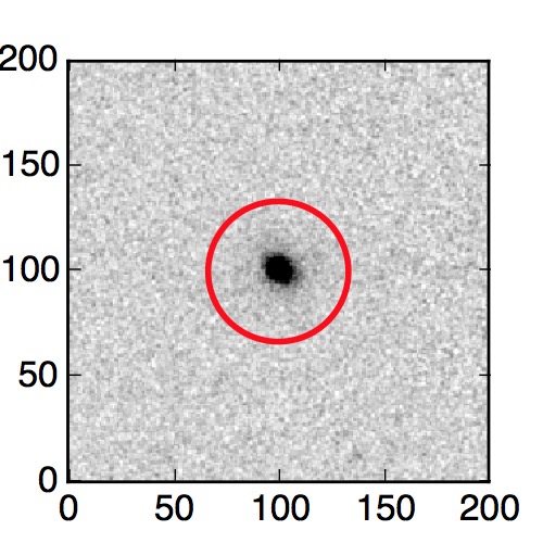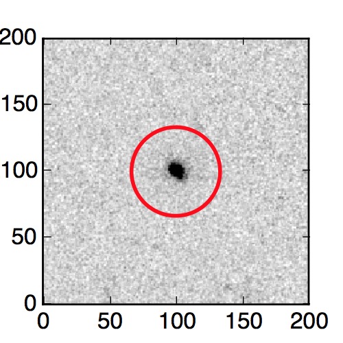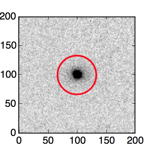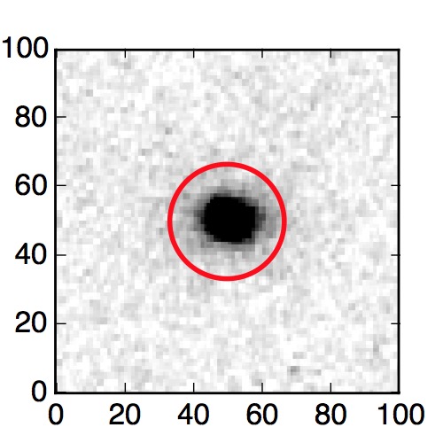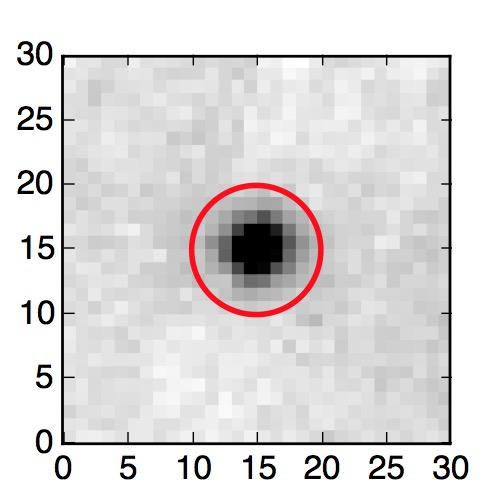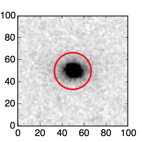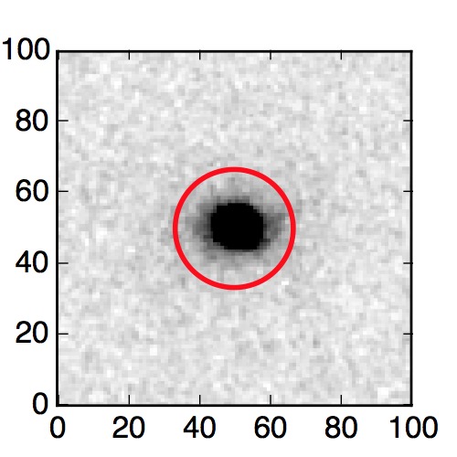 The red circle in the various panels is 1" in radius. The images are 6"x6".