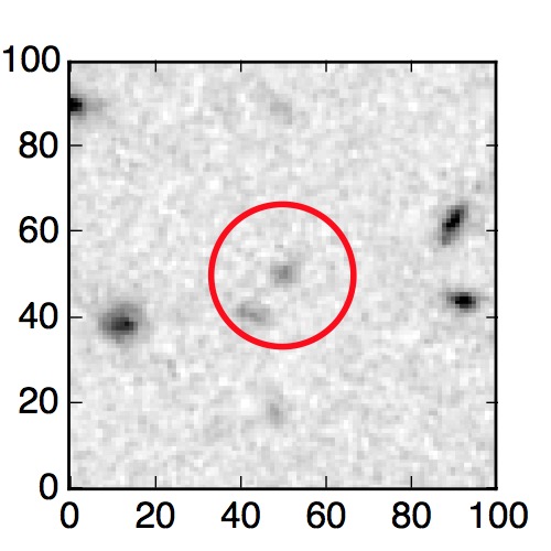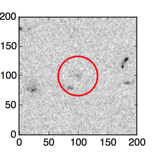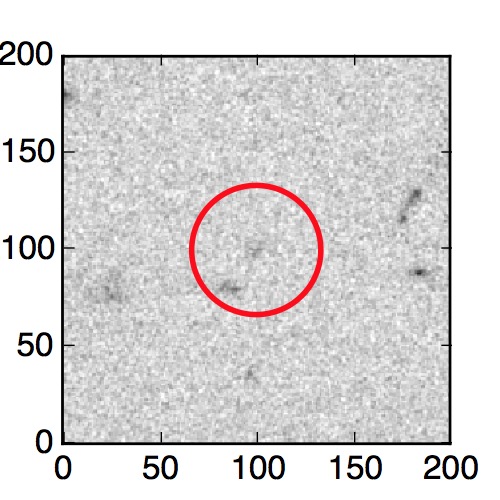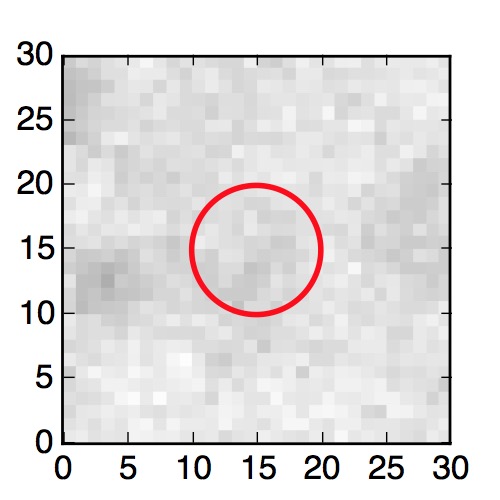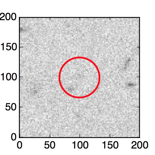 The red circle in the various panels is 1" in radius. The images are 6"x6".