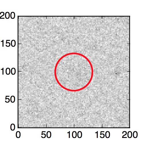 The red circle in the various panels is 1" in radius. The images are 6"x6".