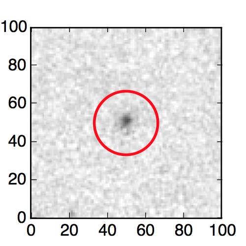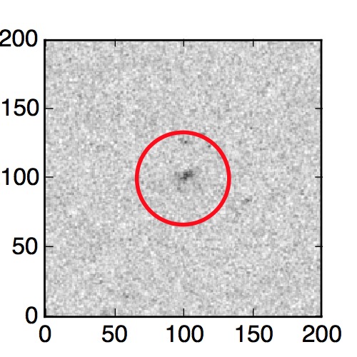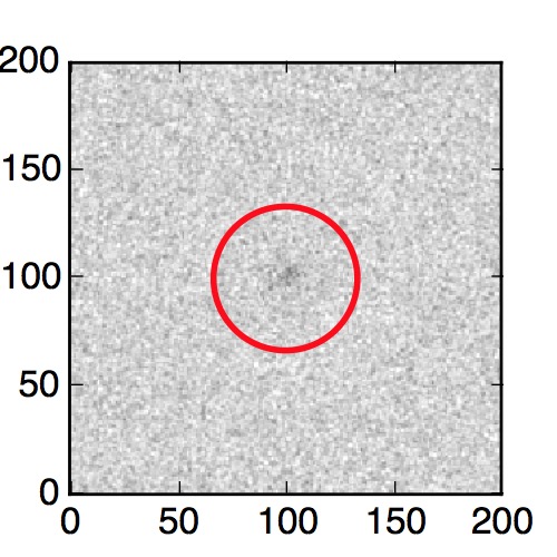 The red circle in the various panels is 1" in radius. The images are 6"x6".