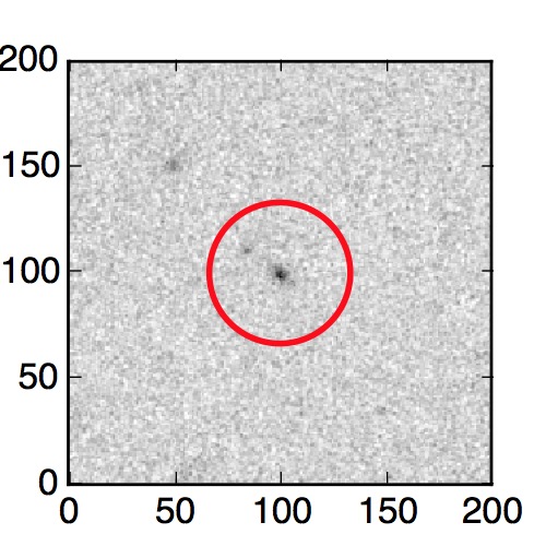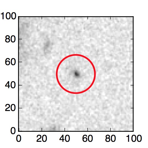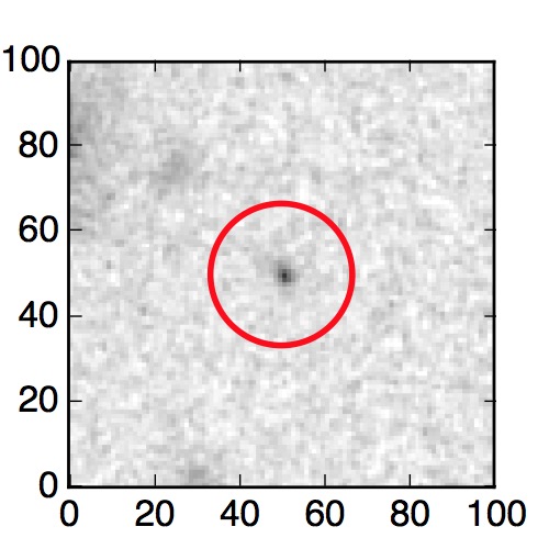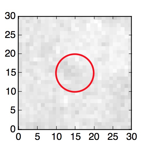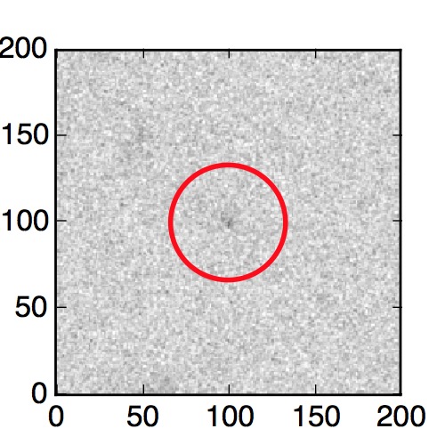 The red circle in the various panels is 1" in radius. The images are 6"x6".