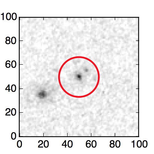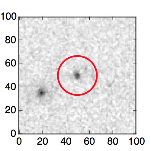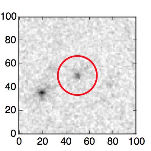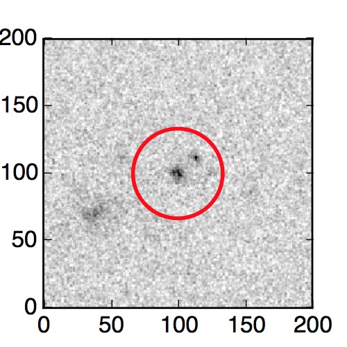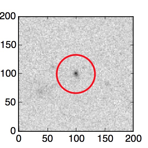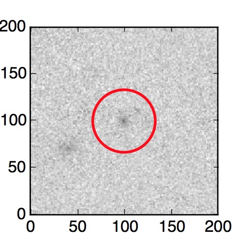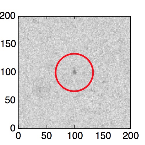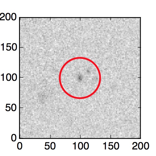 The red circle in the various panels is 1" in radius. The images are 6"x6".