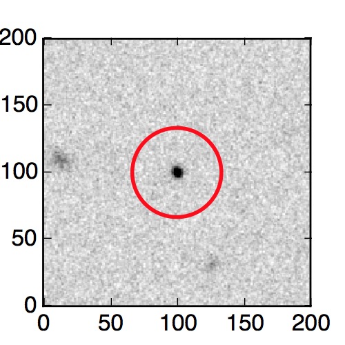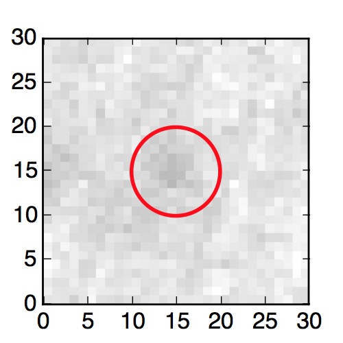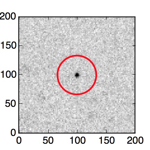 The red circle in the various panels is 1" in radius. The images are 6"x6".