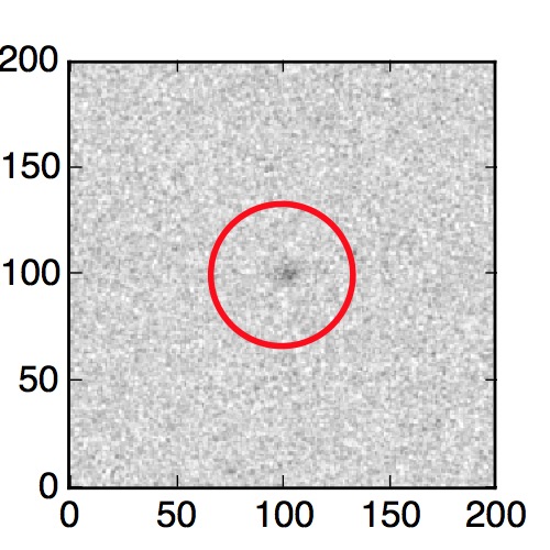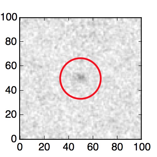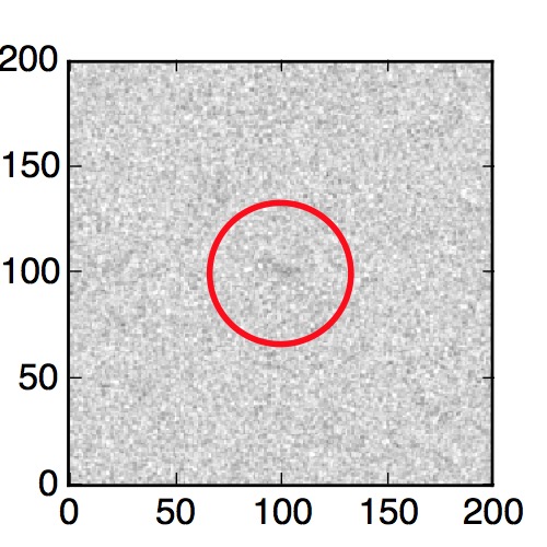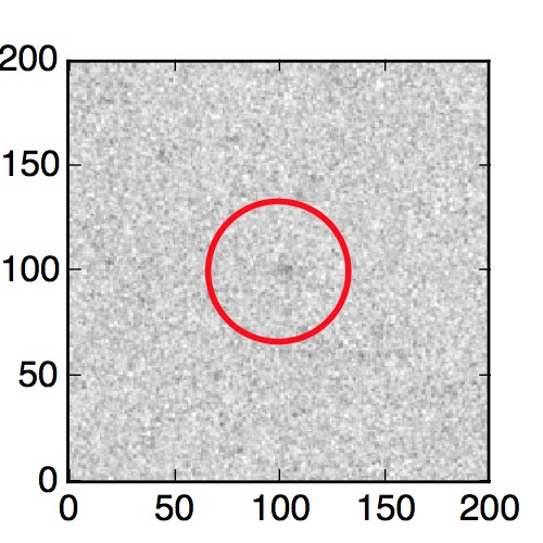 The red circle in the various panels is 1" in radius. The images are 6"x6".