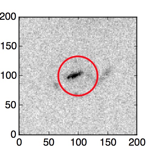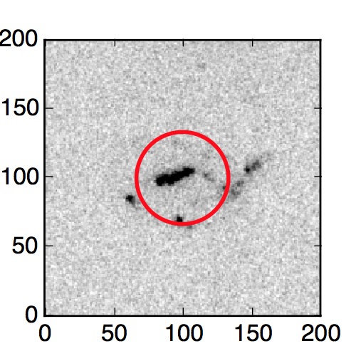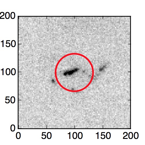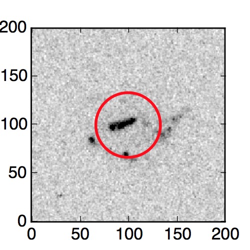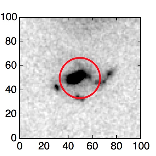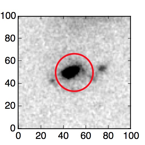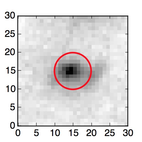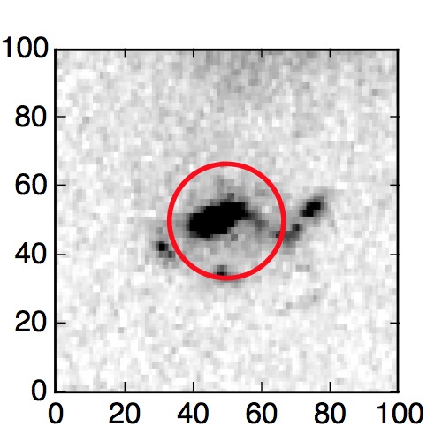 The red circle in the various panels is 1" in radius. The images are 6"x6".