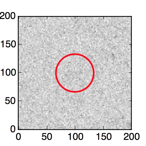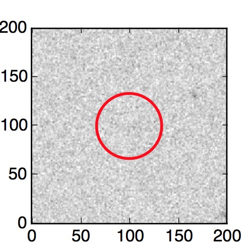 The red circle in the various panels is 1" in radius. The images are 6"x6".