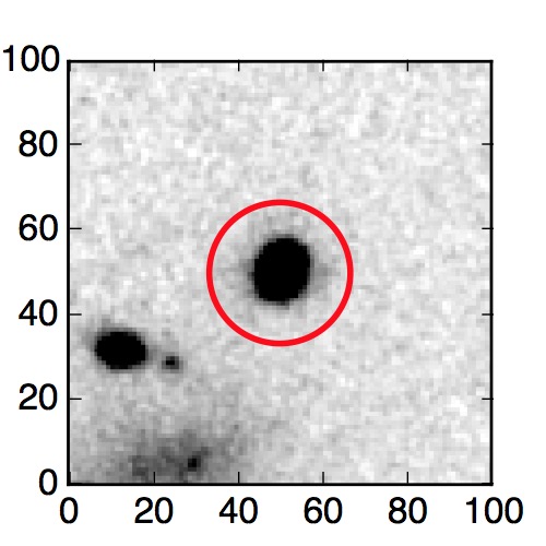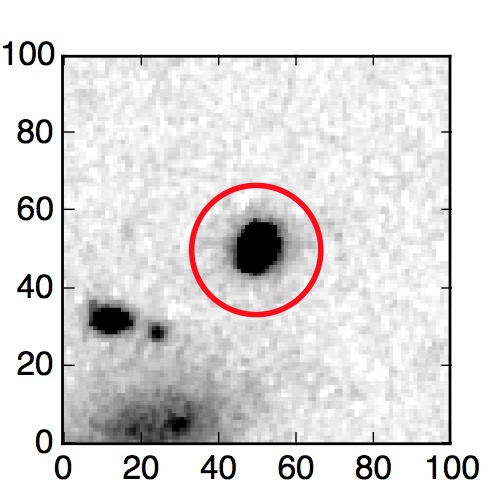 The red circle in the various panels is 1" in radius. The images are 6"x6".