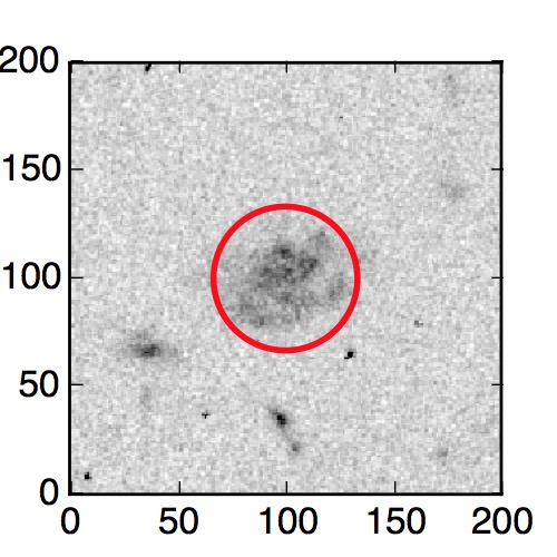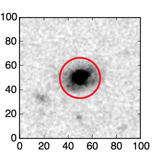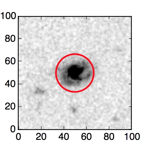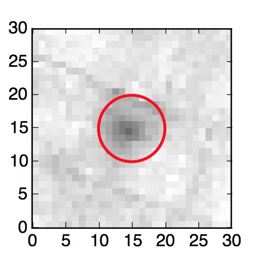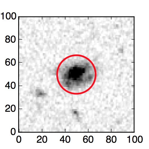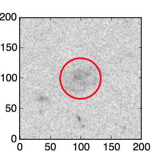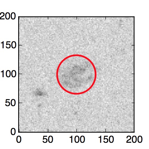 The red circle in the various panels is 1" in radius. The images are 6"x6".
