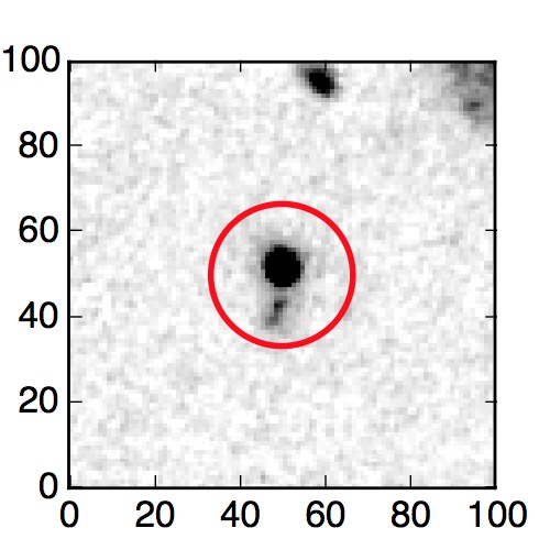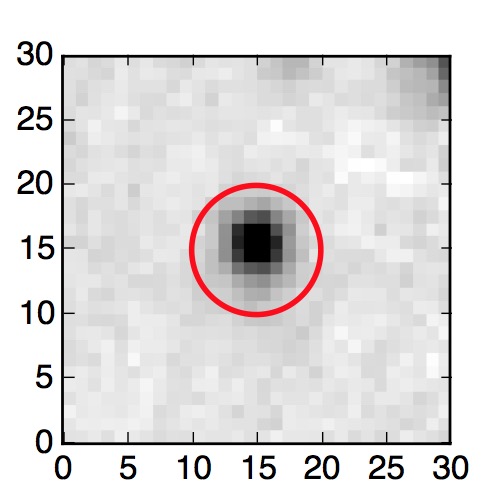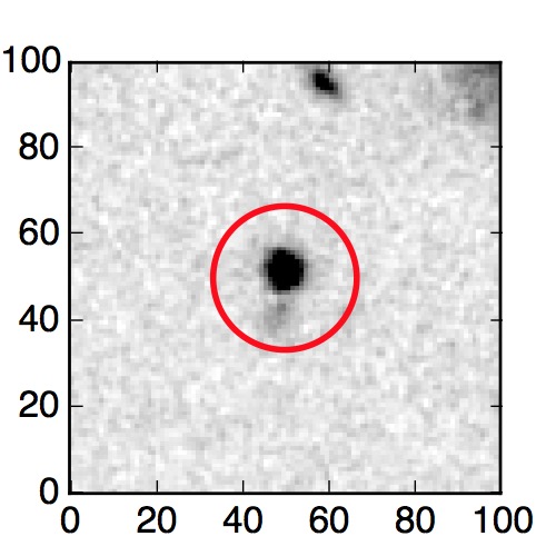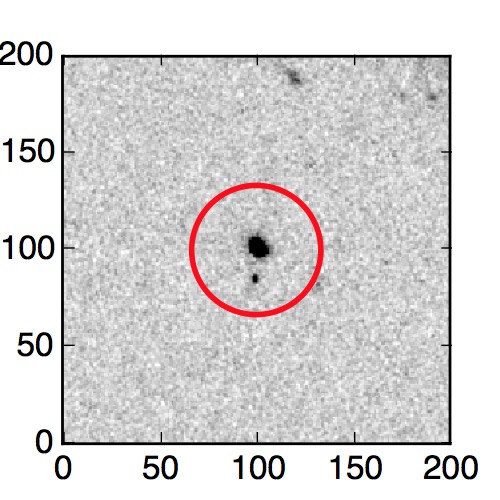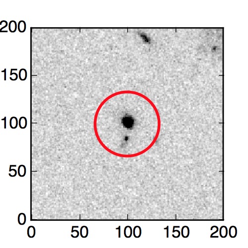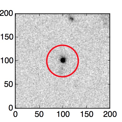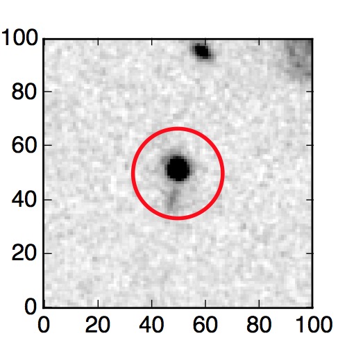 The red circle in the various panels is 1" in radius. The images are 6"x6".
