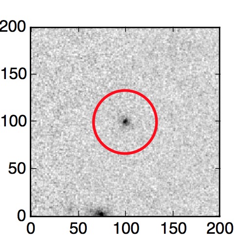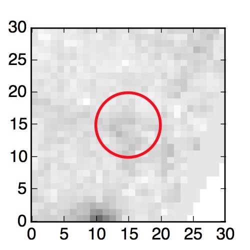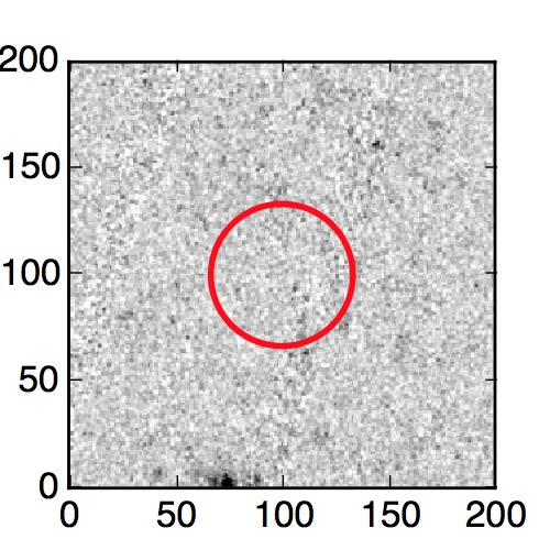 The red circle in the various panels is 1" in radius. The images are 6"x6".