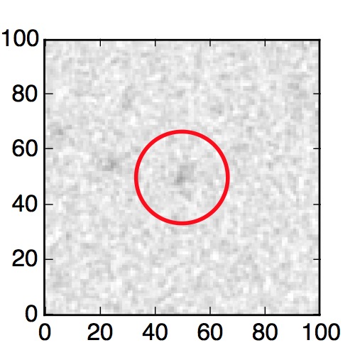 The red circle in the various panels is 1" in radius. The images are 6"x6".