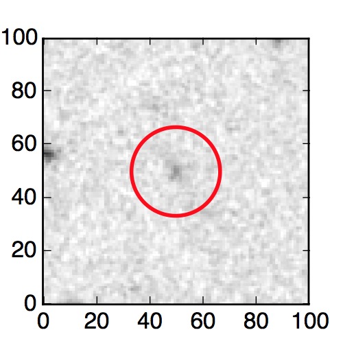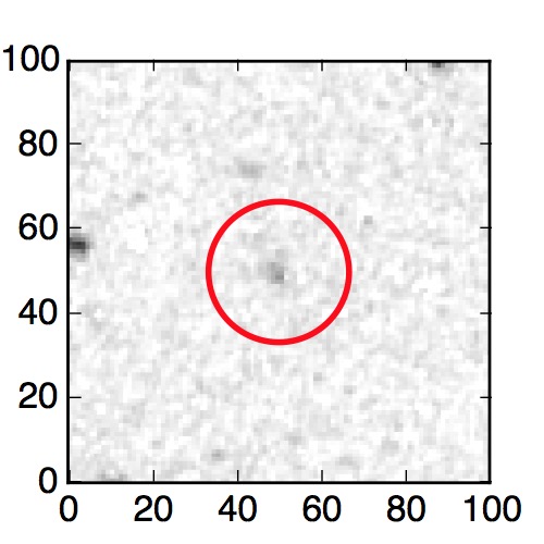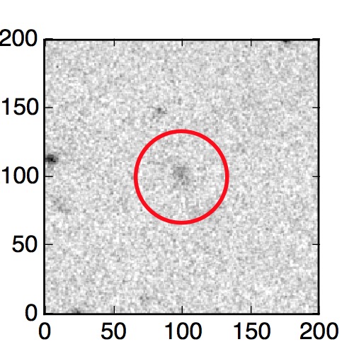 The red circle in the various panels is 1" in radius. The images are 6"x6".