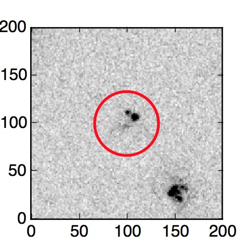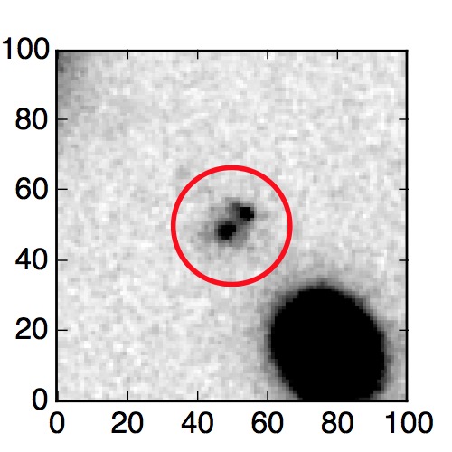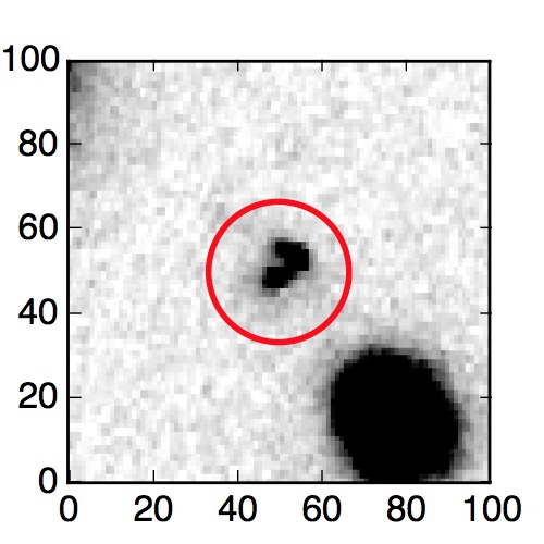 The red circle in the various panels is 1" in radius. The images are 6"x6".