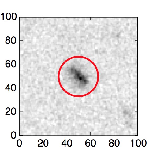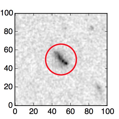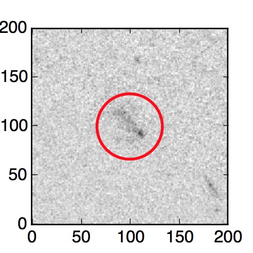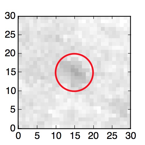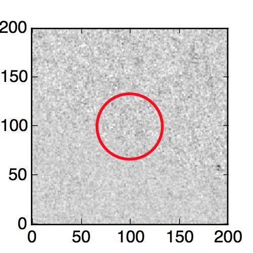 The red circle in the various panels is 1" in radius. The images are 6"x6".