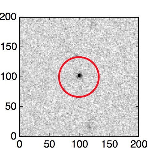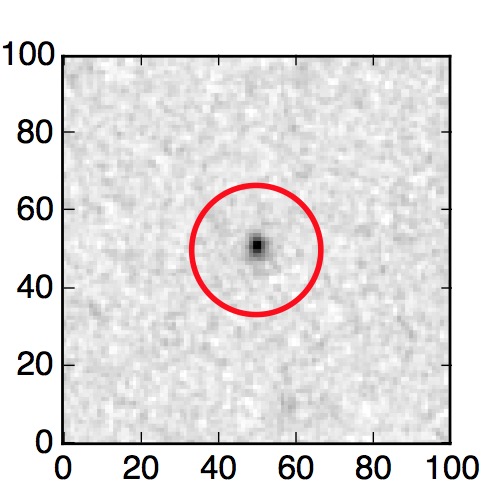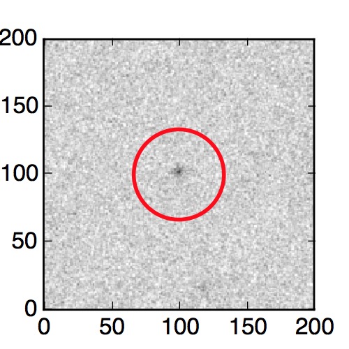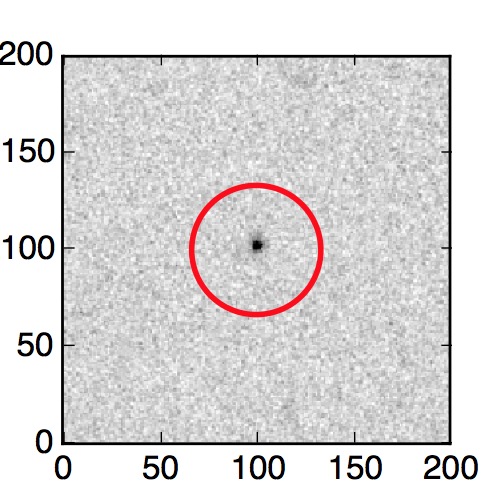 The red circle in the various panels is 1" in radius. The images are 6"x6".