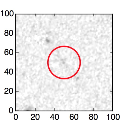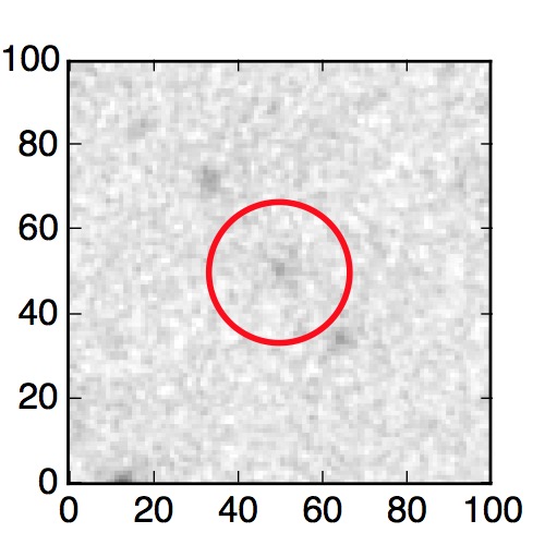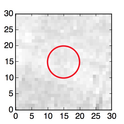 The red circle in the various panels is 1" in radius. The images are 6"x6".