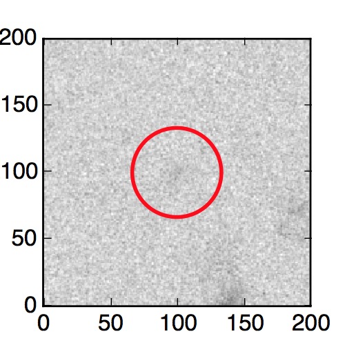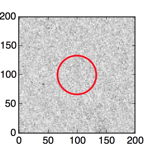 The red circle in the various panels is 1" in radius. The images are 6"x6".