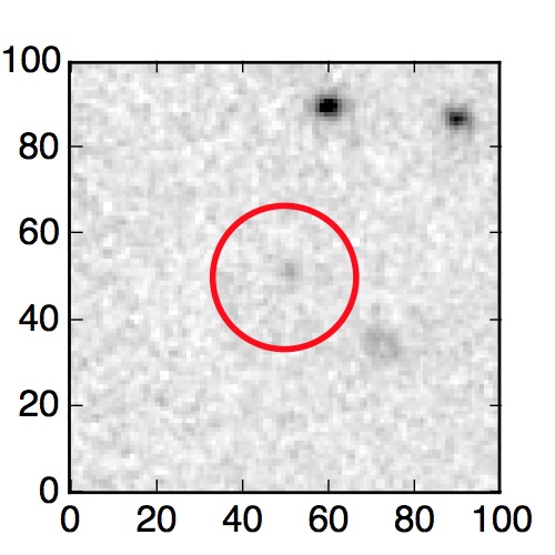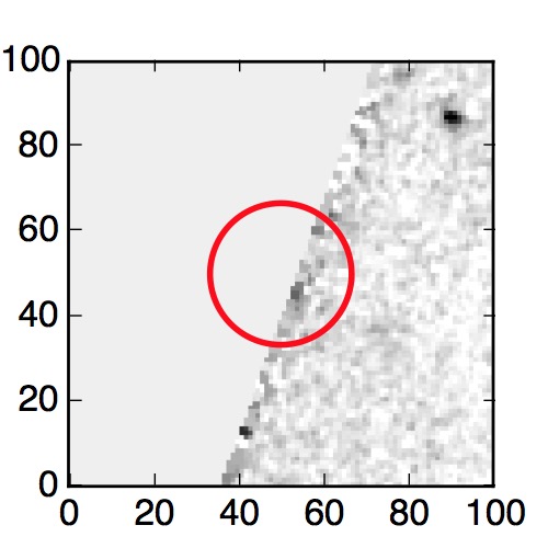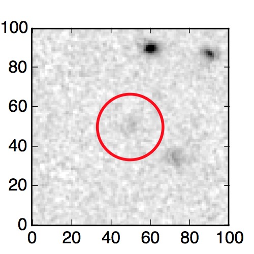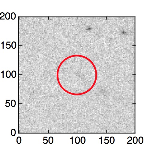 The red circle in the various panels is 1" in radius. The images are 6"x6".