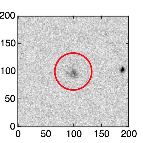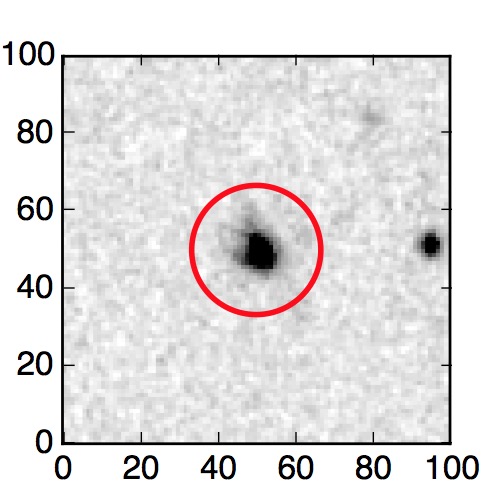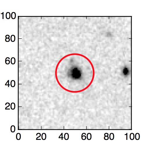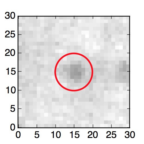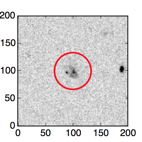 The red circle in the various panels is 1" in radius. The images are 6"x6".