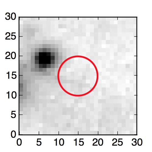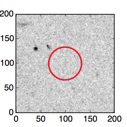 The red circle in the various panels is 1" in radius. The images are 6"x6".
