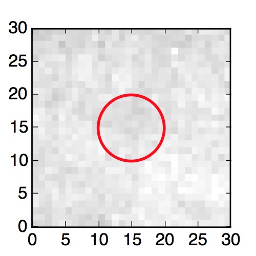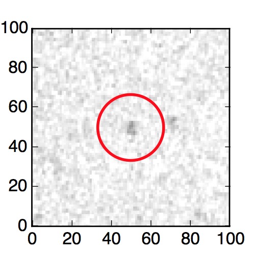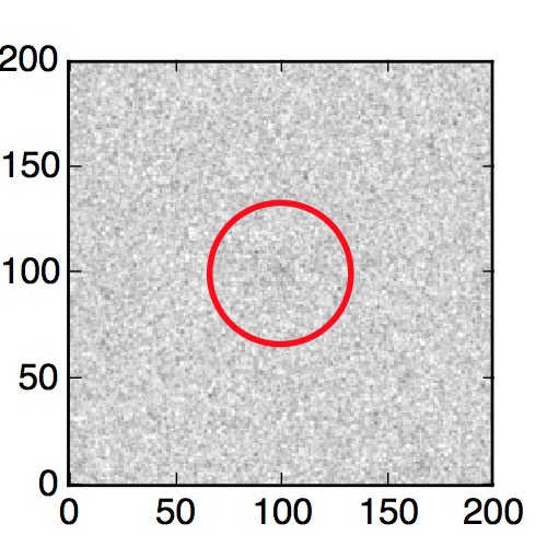 The red circle in the various panels is 1" in radius. The images are 6"x6".