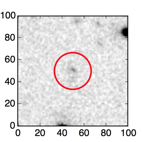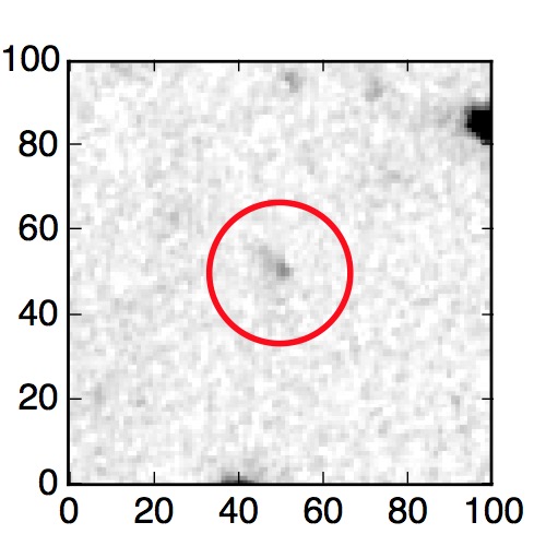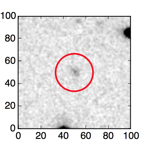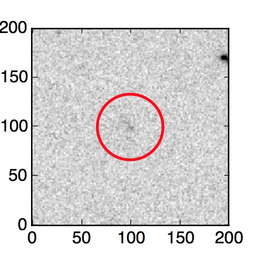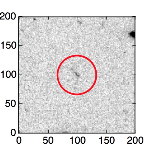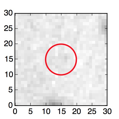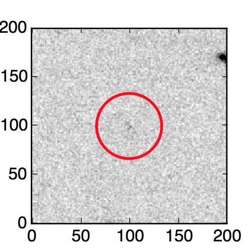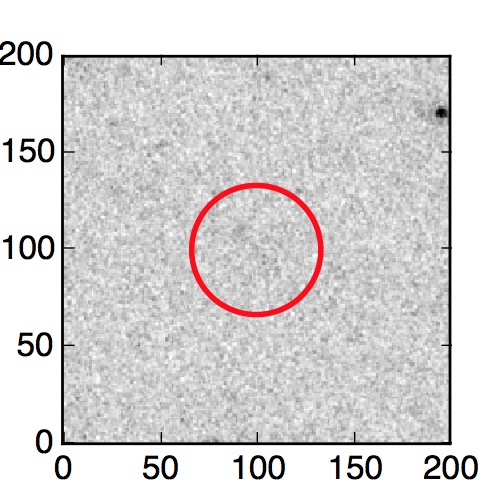 The red circle in the various panels is 1" in radius. The images are 6"x6".