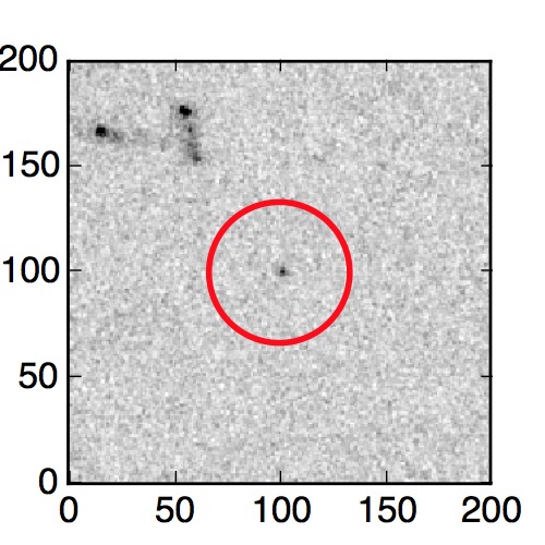 The red circle in the various panels is 1" in radius. The images are 6"x6".