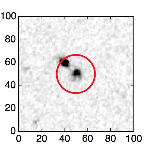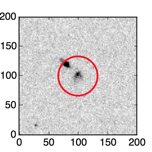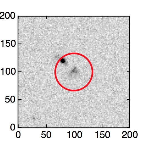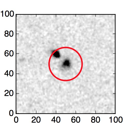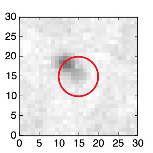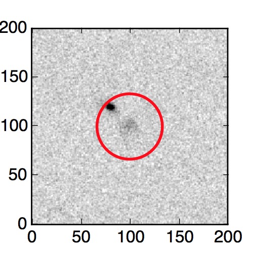 The red circle in the various panels is 1" in radius. The images are 6"x6".