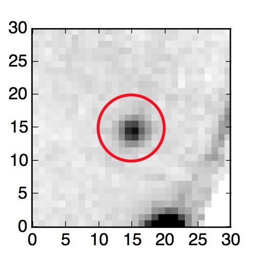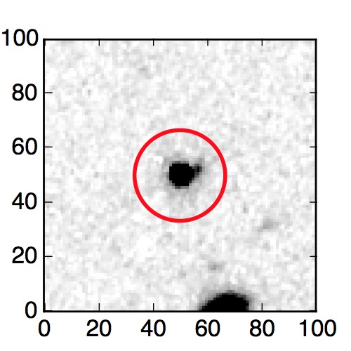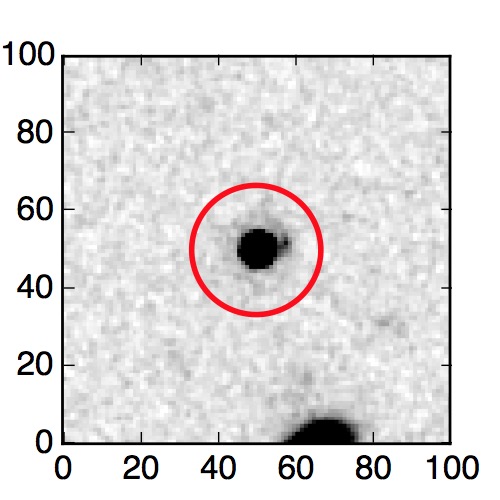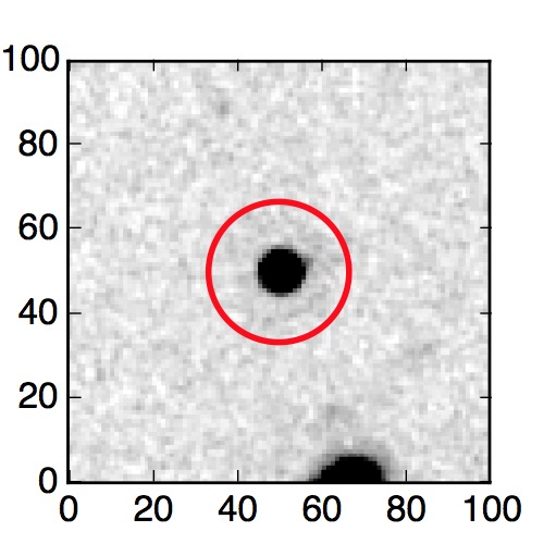 The red circle in the various panels is 1" in radius. The images are 6"x6".