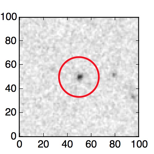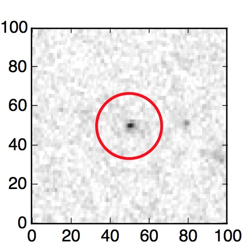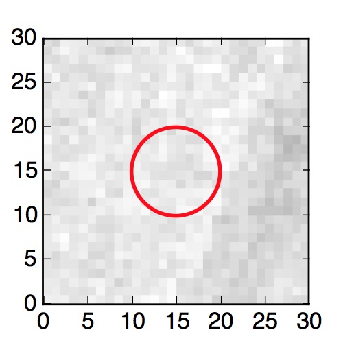 The red circle in the various panels is 1" in radius. The images are 6"x6".