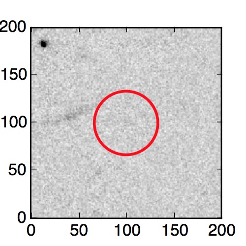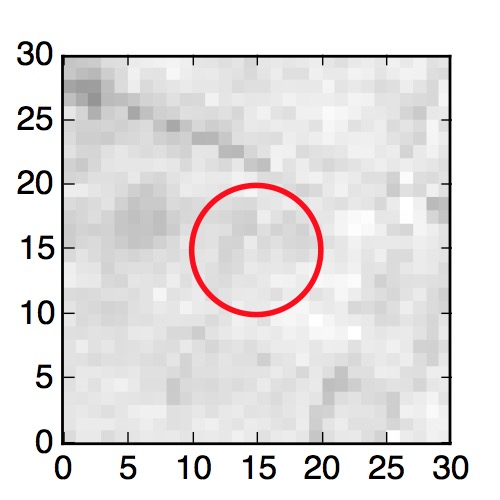 The red circle in the various panels is 1" in radius. The images are 6"x6".