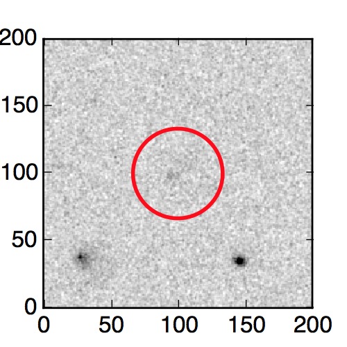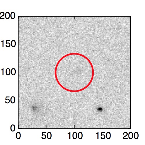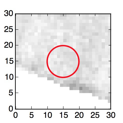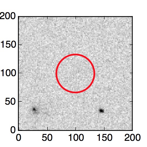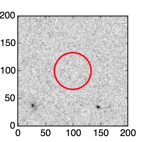 The red circle in the various panels is 1" in radius. The images are 6"x6".