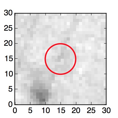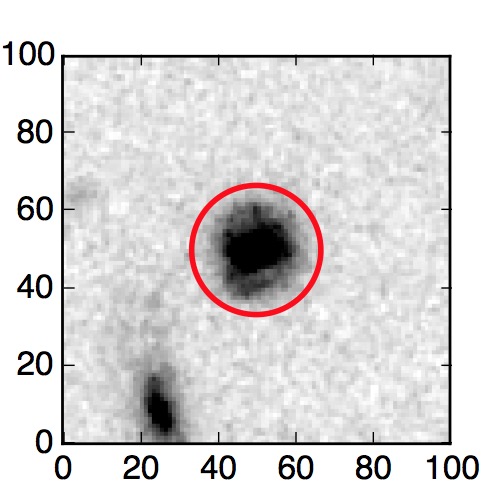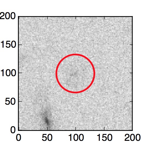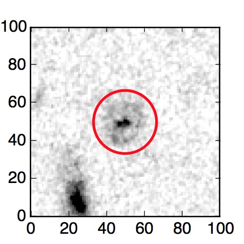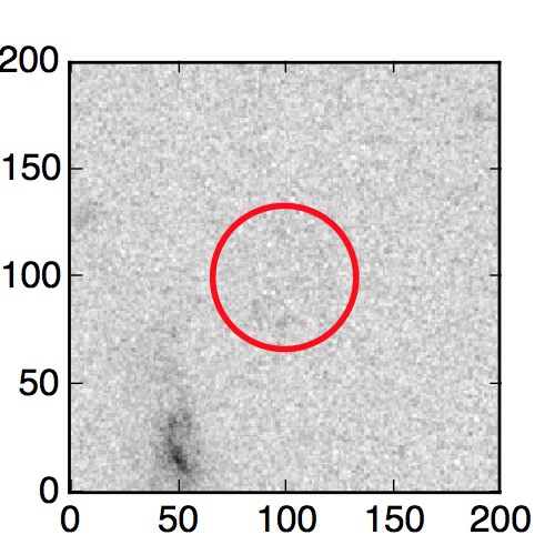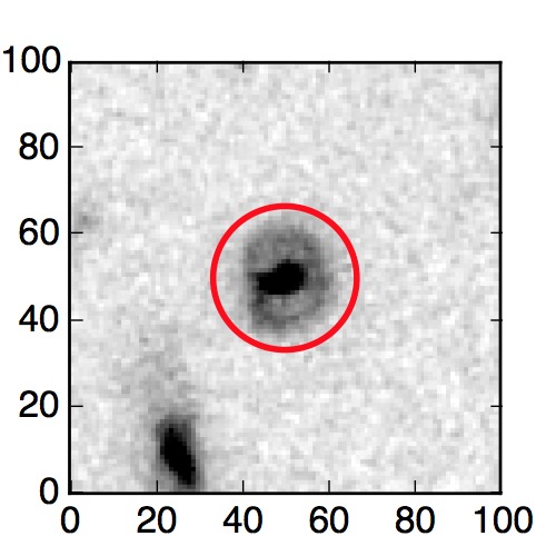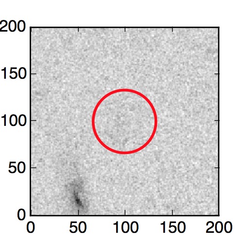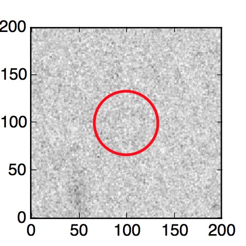 The red circle in the various panels is 1" in radius. The images are 6"x6".