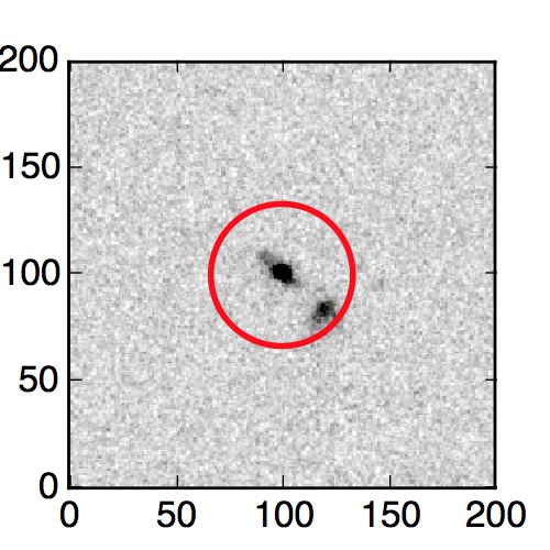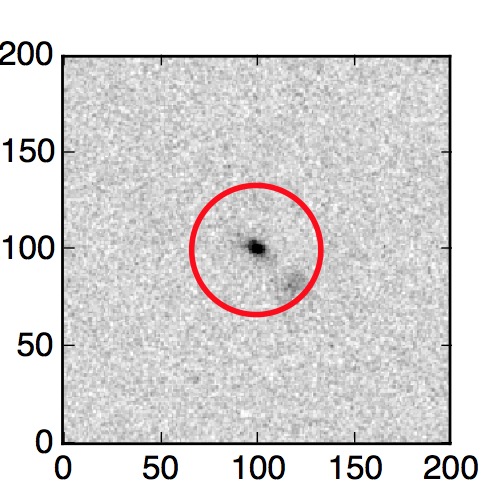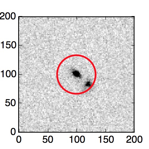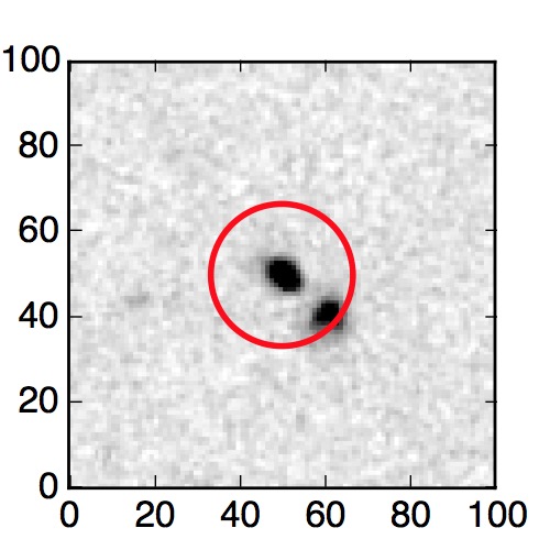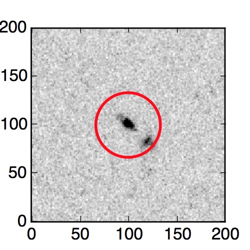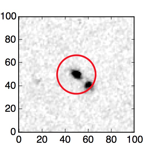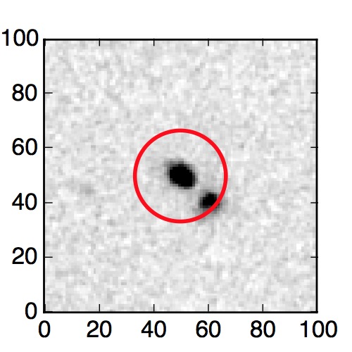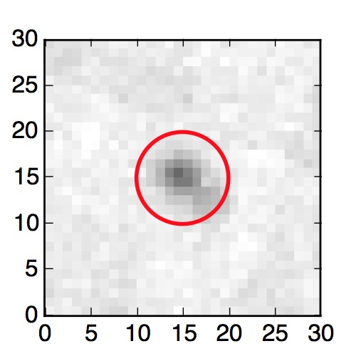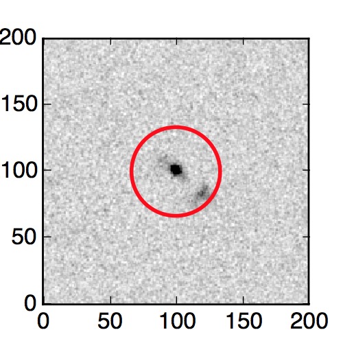 The red circle in the various panels is 1" in radius. The images are 6"x6".